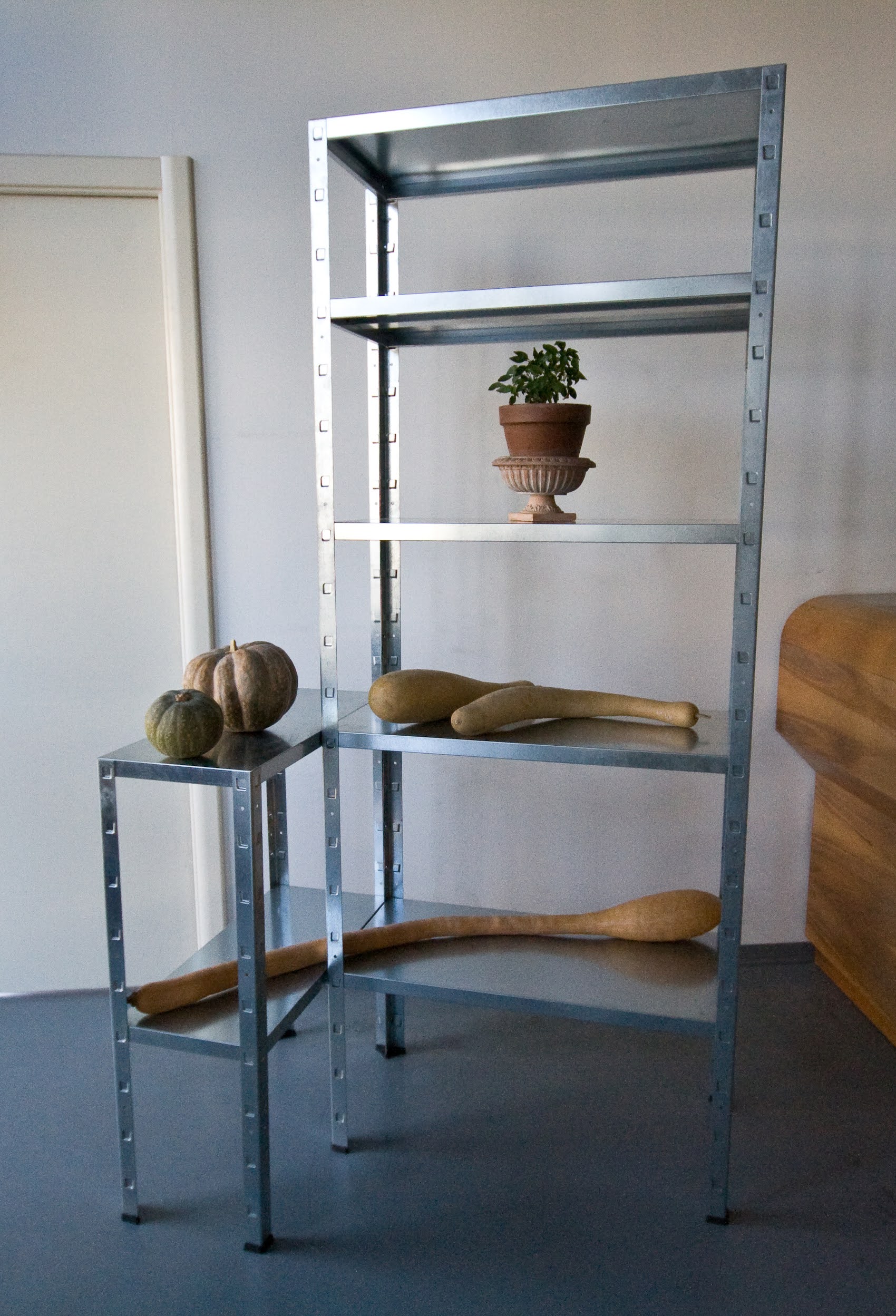 Con feritoie ogni 10cm per l’incastro dei ripiani in lamiera zincata (spessore 7/10), le scaffalature sono dotate di piedini in PVC antiscivolo e vengono fornite viti e dadi per accoppiare più prodotti.